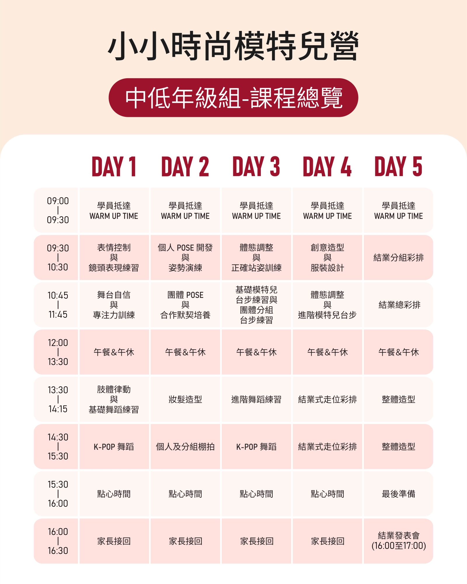 老師會一步步教,從站姿、走路到簡單的舞台表現,孩子都能輕鬆跟上。
