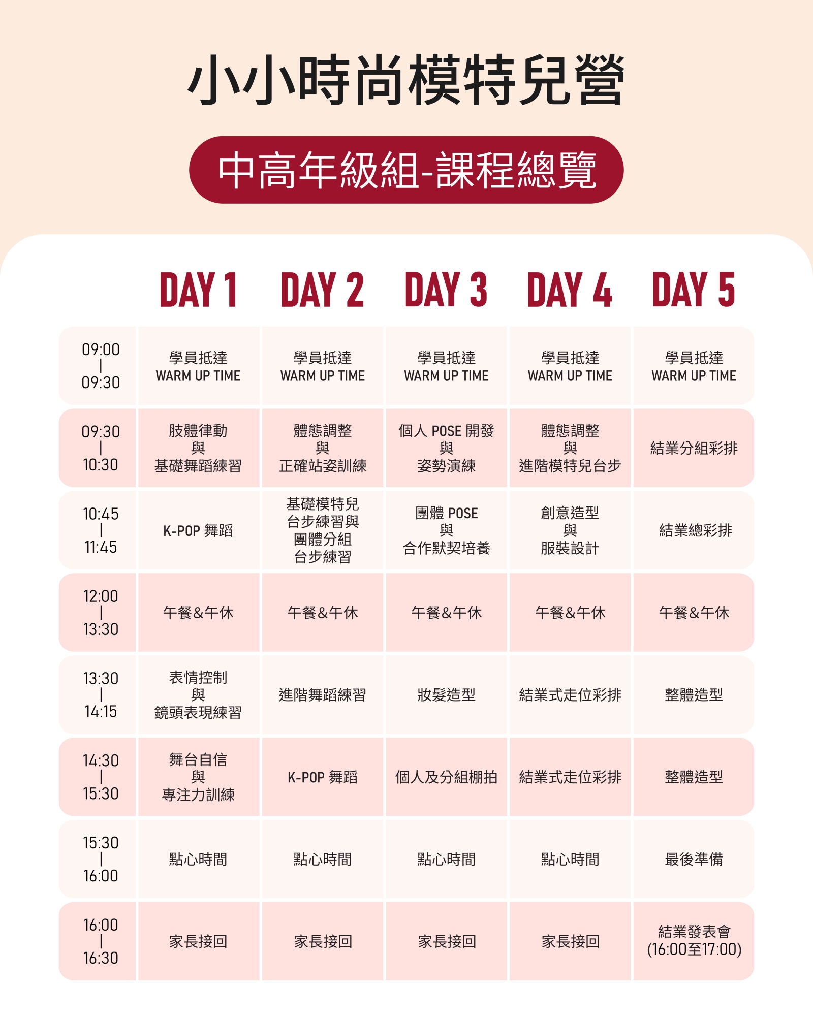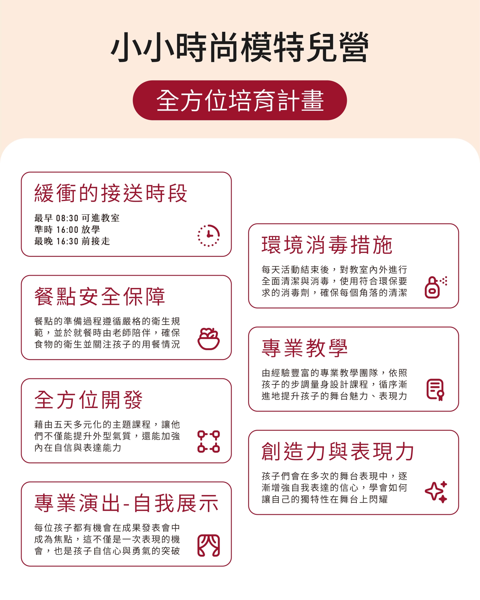 由專業師資帶領,從基本站姿、步伐到舞台呈現,一步步建立孩子的儀態與存在感。